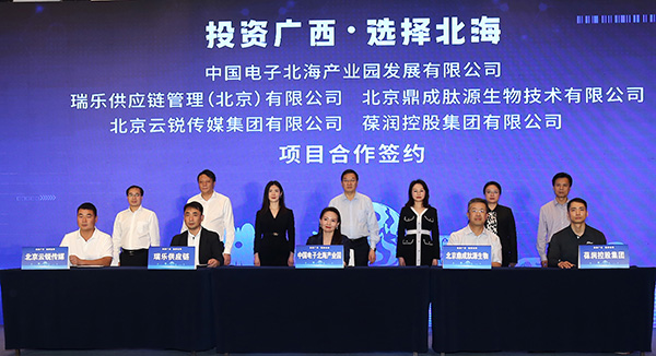 2023年4月14日下午,“投資廣西 選擇北?!睘橹黝}的北海市招商引資座談會(huì)暨2023年中國(guó)電子北部灣信息港產(chǎn)業(yè)招商簽約儀式成功舉辦。在北海市委書(shū)記蔡錦軍,市委常委、常務(wù)副市長(zhǎng)譚秀洪,市委常委、秘書(shū)長(zhǎng)鄭定雄,經(jīng)開(kāi)區(qū)管委會(huì)主任劉忠廣,中國(guó)電子北海產(chǎn)業(yè)園公司執(zhí)行董事徐俊男,長(zhǎng)江商學(xué)院老師徐汀、長(zhǎng)江商學(xué)院老師許耀公的見(jiàn)證下,完成了8個(gè)項(xiàng)目簽約,涉及高端信息服務(wù)、生物醫(yī)療、供應(yīng)鏈、投融資等領(lǐng)域建立戰(zhàn)略合作關(guān)系,共助北海產(chǎn)業(yè)高質(zhì)量發(fā)展。